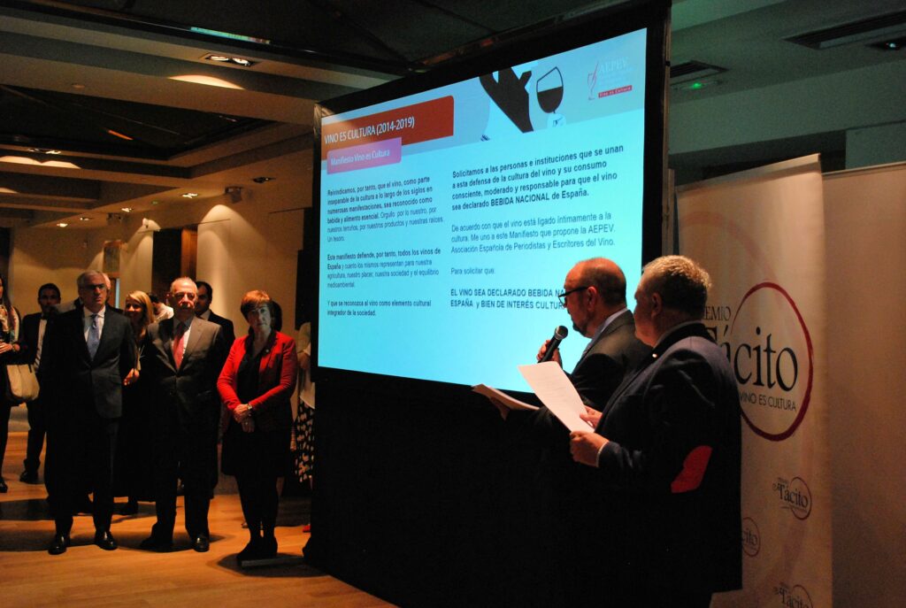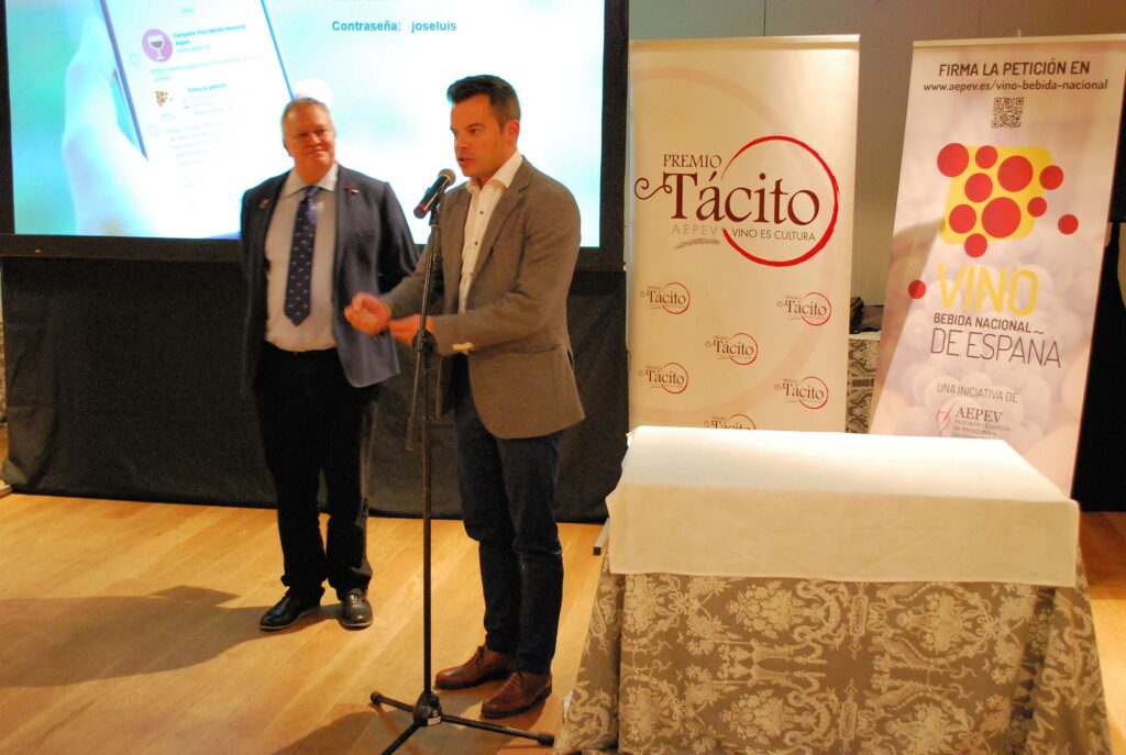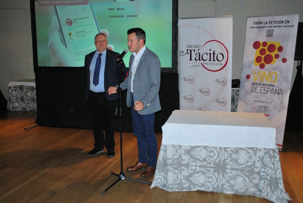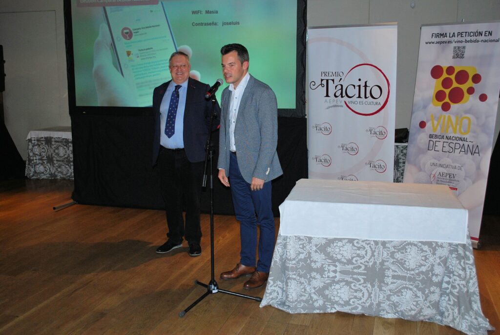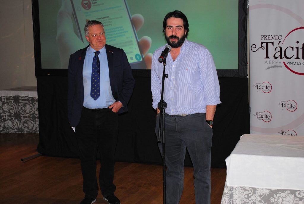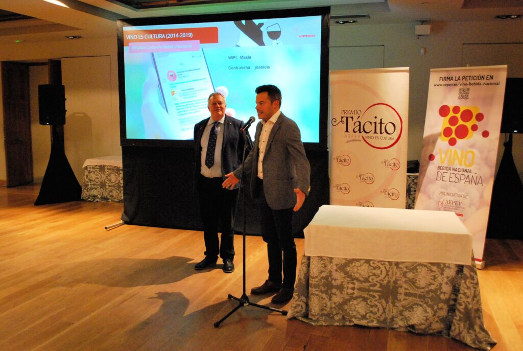 Desde la Gerencia de AEPEV, se puso la relevancia en los Premios Tácito y se presentó la campaña de recogida de apoyos para que el VINO SEA DECLARADO BEBIDA NACIONAL DE ESPAÑA. Poniéndose en marcha en ese momento las adhesiones a través de Change.org y reuniendo en pocos minutos más de 100 firmas.