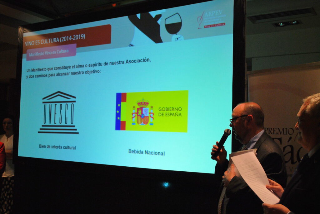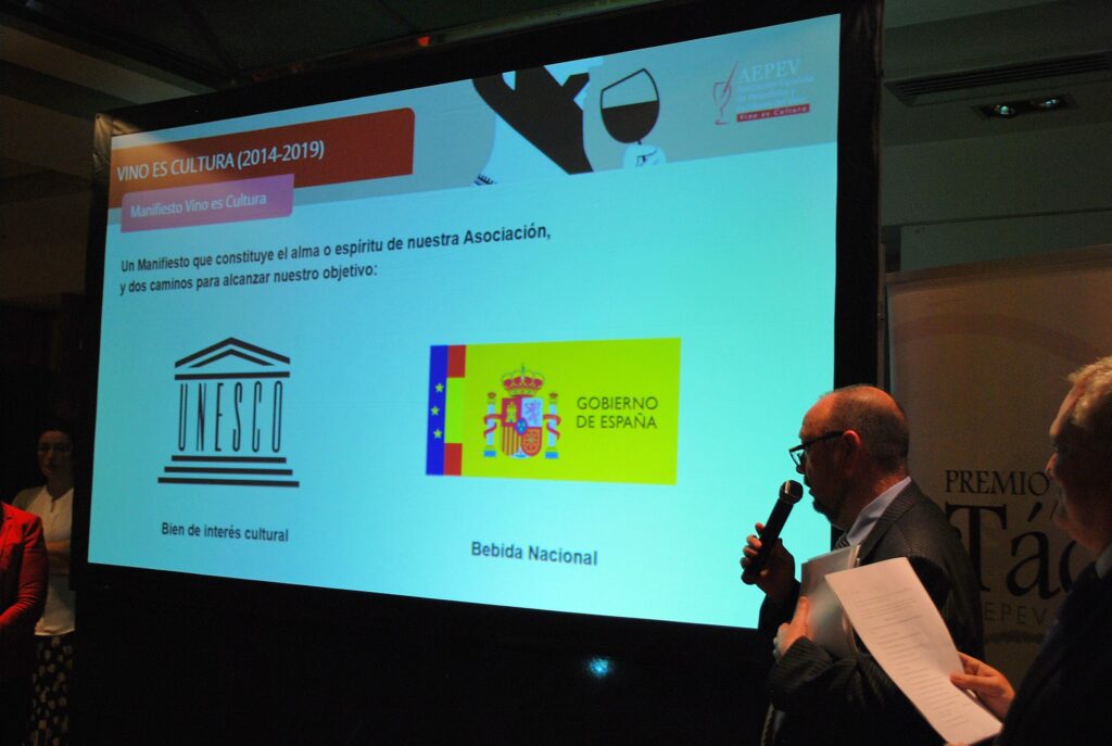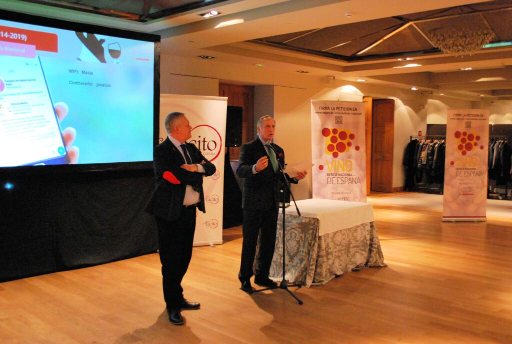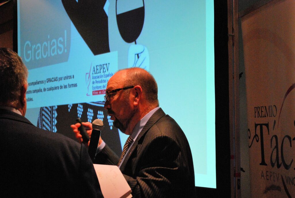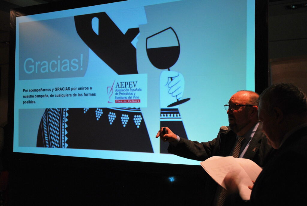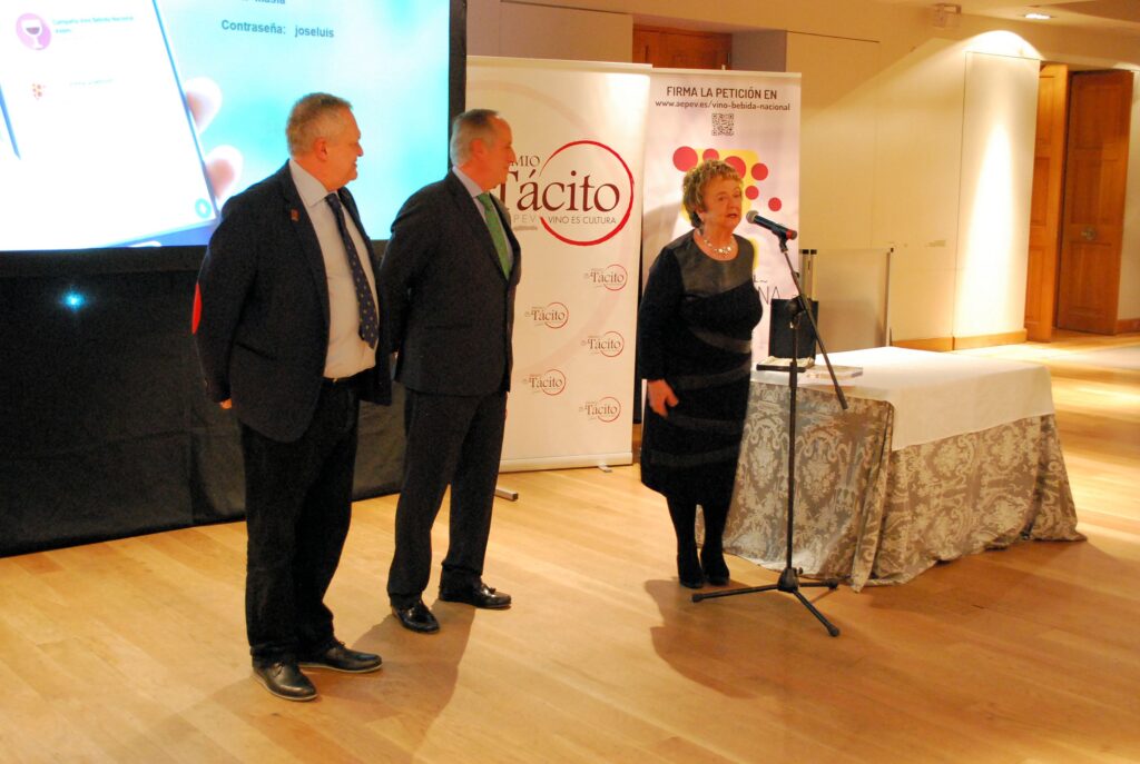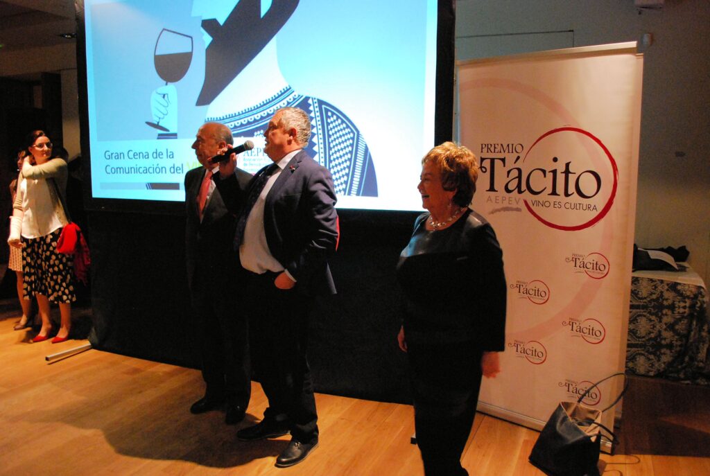 Desde la Gerencia de AEPEV, se puso la relevancia en los Premios Tácito y se presentó la campaña de recogida de apoyos para que el VINO SEA DECLARADO BEBIDA NACIONAL DE ESPAÑA. Poniéndose en marcha en ese momento las adhesiones a través de Change.org y reuniendo en pocos minutos más de 100 firmas.