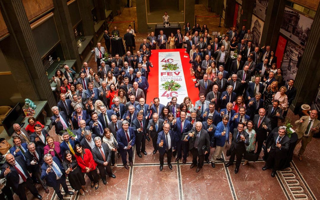 La Federación Española del Vino (FEV) celebró ayer un acto en Madrid para conmemorar su 40 aniversario al servicio del sector bodeguero español y reivindicar la riqueza social y cultural del vino, que trasciende más allá de la propia actividad económica y está presente desde la antigüedad en numerosas expresiones artísticas  y culturales, desde la arquitectura a la literatura, pasando por la gastronomía, el cine, la música o la moda.
