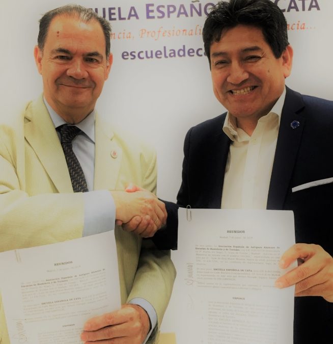 El acuerdo, que tiene una duración de un año, fue firmado por Arturo Hurtado en calidad de Gerente General de Escuela Española de Cata y Juan de Dios Hueso Montón, Presidente de la Asociación Española de Antiguos Alumnos de Escuelas de Hostelería y de Turismo. Además de contar con la presencia de Carmen Garrobo, Directora de Escuela Española de Cata. La firma se celebró en la sede de Escuela Española de Cata ubicada en Calle Mártires Concepcionistas, 19 de Madrid.