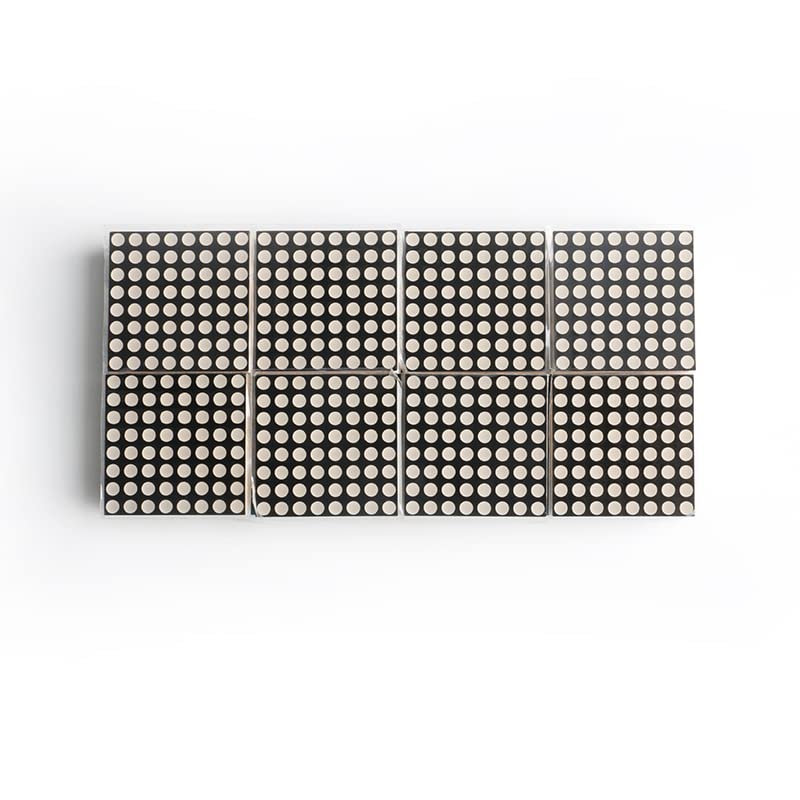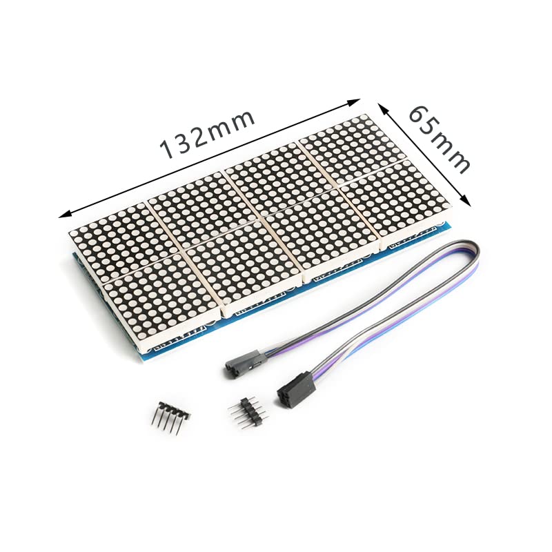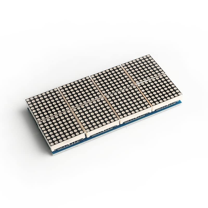 The MAX7219 is an integrated serial input/output common cathode display driver that connects a microprocessor to an 8-digit 7-segment LED display, a bar graph display, or 64 individual LEDs.Product Specifications- Operating Voltage: 5V- Dimensions: 130 x 65 mm- Equipped with 32 mounting screw holes, 3mm diameter- Single module can drive an 8¡Á8 dot matrix common cathode display- Module features input/output interfacesInstructions:Instructions- VCC to 5V- GND to GND- DIN to P2.2- CS to P2.1- CLK to P2.0